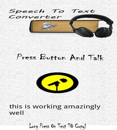 I would like to recommend you an application with large number of downloaders. 30,000+ users downloaded Speech To Text Converter latest version on 9Apps for free every week! You will feel better when you start playing This hot app was released on 2013-06-03. Come and download it now!