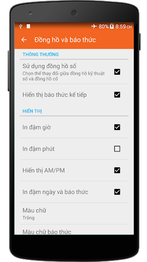 - Tùy chọn hiển thị đồng hồ số hoặc đồng hồ kim.
