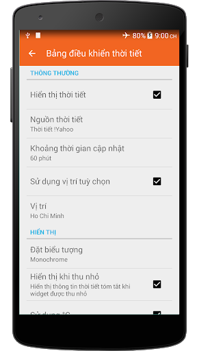 - Khung thời tiết với thông tin từ Yahoo!, OpenWeatherMap cung cấp.