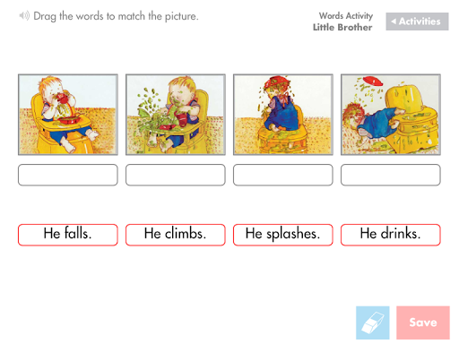 • Each e-book has three activities to test comprehension and vocabulary and phonics skills