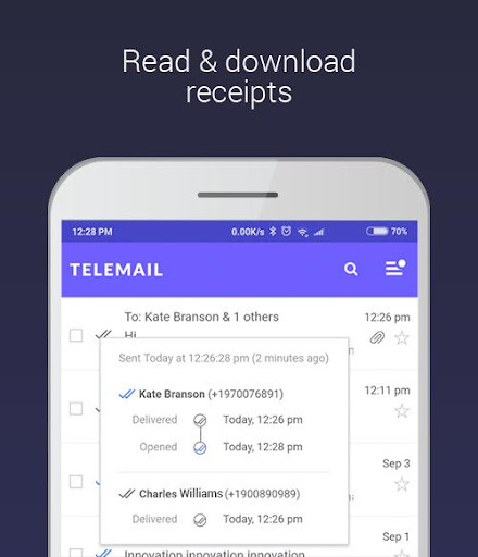 Get delivered, read, forwarded receipts for your emails and download receipts for your email-attachments.