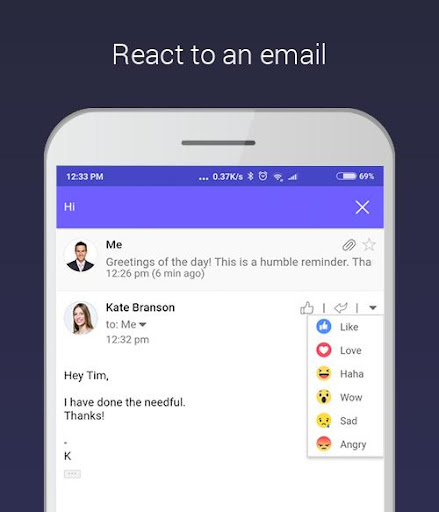 A smart and short reply: Simply react to an email by clicking the famous like button.