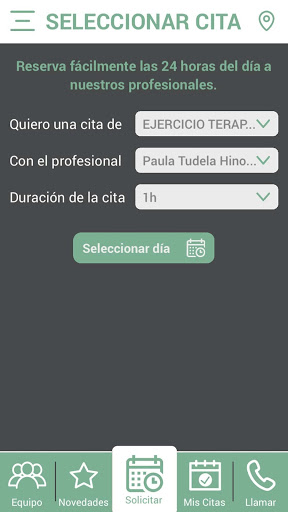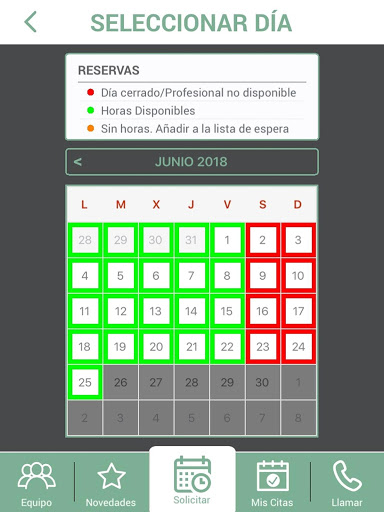 Ứng dụng của chúng tôi có một hệ thống dự trữ tích hợp mới mà bạn có thể đặt một cuộc hẹn cho bất kỳ dịch vụ nào của chúng tôi và với chuyên gia bạn có thể chọn . Bằng cách chỉ cần nhấn nút, bạn sẽ thấy lịch của các chuyên gia của chúng tôi và bạn có thể chọn thời gian phù hợp với bạn. Quên về việc phải gọi qua điện thoại, gửi tin nhắn, v.v ... Chúng tôi muốn để tất cả những thứ đó và đây là thời gian.