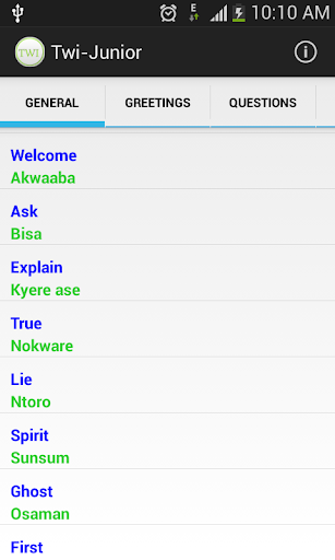 The goal for this application is to cover nearly all the items as well as commonly used phrase’ in the (Twi) language.