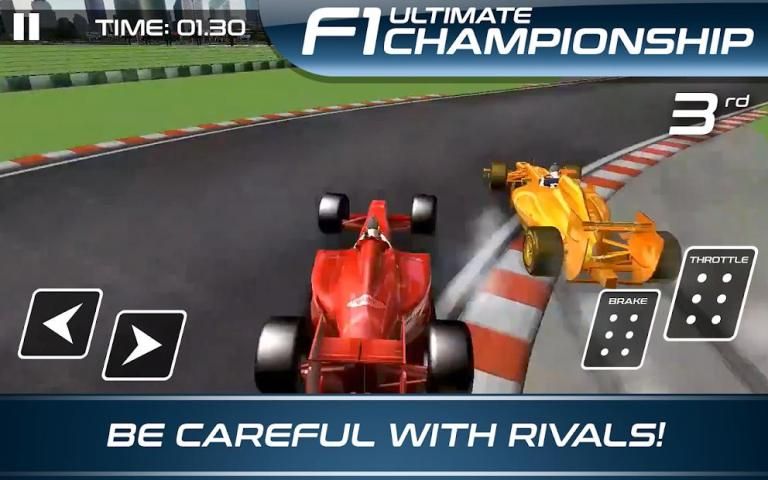 Download now for free " Ultimate F1 Racing Championship " and catch the opponents before they touch the finish line. Challenge the rivals on asphalt tracks in formula car racing games 3d.