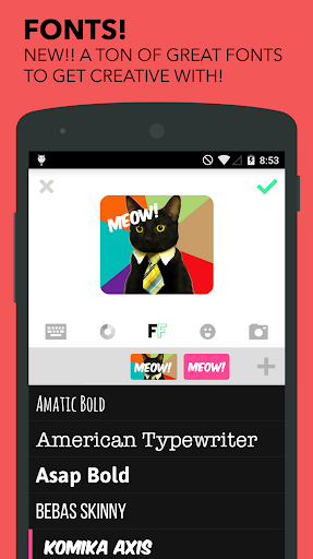Ultra-fast, Ultra-colorful. Ultratext’s type-to-create interface is the fastest way to make a GIF message.