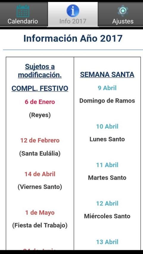 -Information On the 2017 holidays, Easter, Summer Schedule Change-Winter etc ..