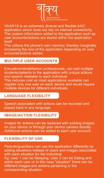 Vaakya is a picture based AAC app designed for people with speech impairments.This may be in the case of aphasia, MND/ALS, after a stroke, in case of vocal cord problems or other speech problems. It is also suitable for Individuals affected by autism, cerebral palsy and various other mental and physical conditions. The app is an AAC (Augmentative and Alternative Communication) tool and can also be used to practice during rehabilitation. Even for individuals with such conditions that are unable to read, it works as an effective tool to communicate as it depends on images and audio instead of text.