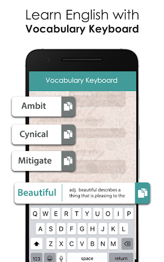 Bàn phím từ vựng là bàn phím gõ tiếng Anh giúp gõ với đòn tấn công nhanh. Nhập bàn phím tiếng Anh và tăng vốn từ vựng của bạn bằng cách học từ mới trên mỗi lần xuất hiện của bàn phím Word. Bàn phím từ vựng được thiết kế để tạo điều kiện cho những người muốn học tiếng Anh. Mục đích của bàn phím tiếng Anh này là cung cấp một cách dễ dàng để ghi nhớ các từ tiếng Anh mới có thể được sử dụng tại thời điểm gõ.