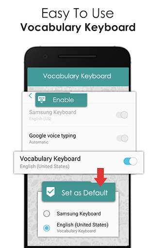 Thưởng thức tiếng Anh nhanh chóng và dễ dàng với việc học từ mới cho từ vựng. Ghi nhớ từ vựng bằng cách nhìn vào từ được hiển thị trên thanh trên cùng của bàn phím với ý nghĩa của nó nhiều lần mà không nhận ra. Bàn phím từ vựng sẽ không chỉ giúp học từ mới mà còn giữ kiến thức của bạn bằng cách sử dụng những từ ngẫu nhiên trong gõ của bạn.