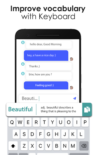 Bàn phím tiếng Anh từ vựng được chế tạo tùy chỉnh để giảm bớt việc gõ của người dùng với các nút thanh lịch và sạch sẽ. Gõ nhanh hơn và tốt hơn với bàn phím tiếng Anh. Trong bàn phím Word, hàng trăm biểu tượng cảm xúc cũng được thêm vào để làm cho trò chuyện của bạn nhiều màu sắc. Nhập và học các từ mới với bàn phím học tiếng Anh tuyệt vời. Tăng vốn từ vựng của bạn bằng những từ ngữ tiếng Anh ngẫu nhiên mới với ý nghĩa.