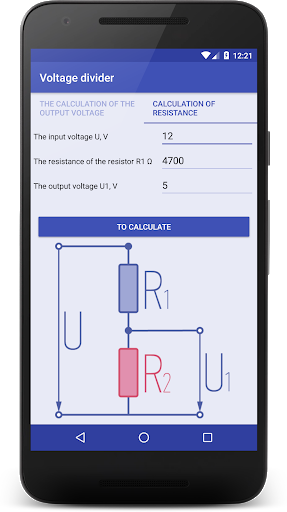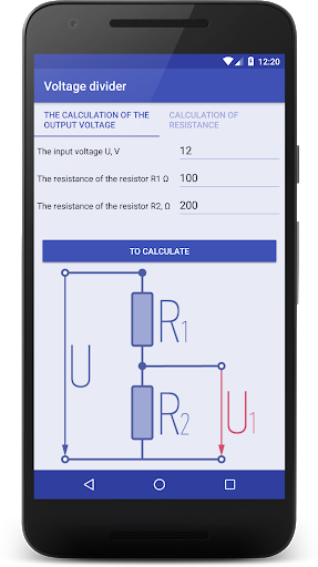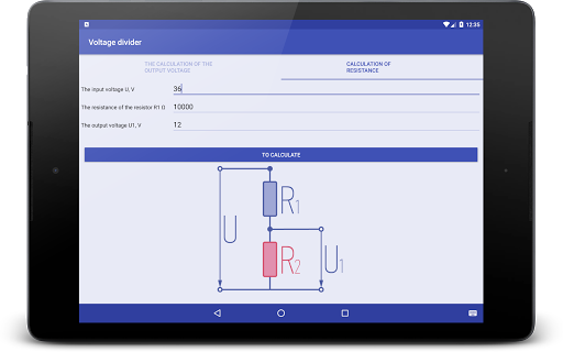 - calculation of the output voltage, the specified values of the input voltage and resistance;