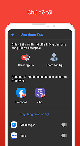 • Để bảo vệ dữ liệu, người dùng có thể đặt mật khẩu bảo mật cho Ứng dụng Kép.