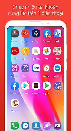Vsmart Ứng dụng Kép cho phép người dùng đăng nhập cùng lúc vào 2 tài khoản khác nhau cho cùng 1 ứng dụng.