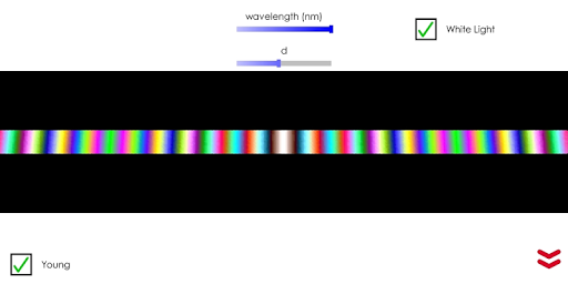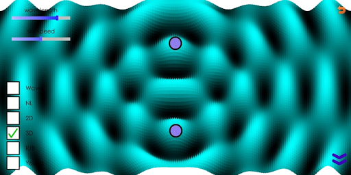 This app simulates a two-point source interference pattern as well as Thomas Young's double slit experiment with light. The two sources can be moved, the frequency can be adjusted, and the simulation can display nodal lines, 2D or 3D patterns.