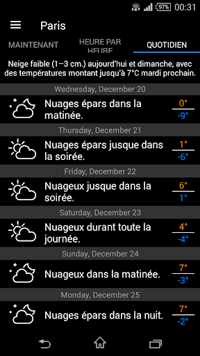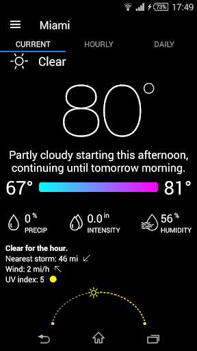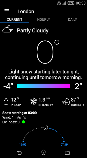 • Ability to track device location and displaying the current weather at a given location (using network/AGPS or GPS)