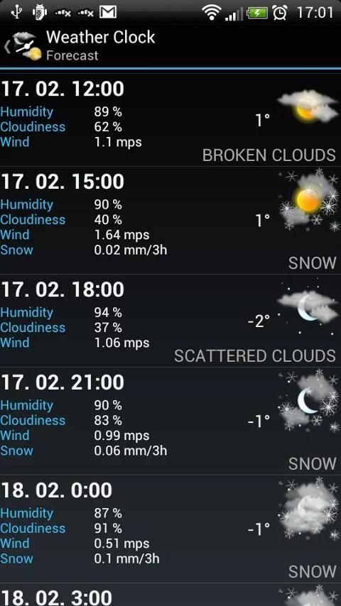 This application is a lite version which is limited to the next 9-hour forecast. Please consider purchasing "Weather Clock Unlock"* and get unlimited 7-days hourly forecast including cloud coverage, humidity and wind speed. You may also switch between a black and white clock faces.