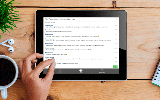 Chúng tôi cung cấp cho bạn một khả năng tham gia vào các hội thảo trên web bằng ứng dụng của chúng tôi từ bất kỳ thiết bị di động nào.