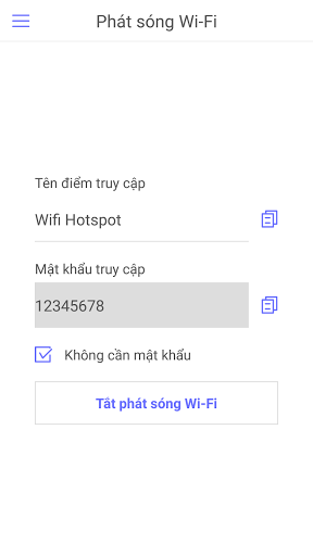 • Sao chép tên và mật khẩu Wi-Fi vào bộ nhớ tạm.
