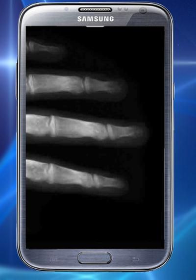 Smoothly moving the device along the arm - the screen will change after you, creating the effect of X-rays of the hand.