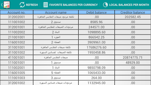 Account balances Net balances (in local currency) with the possibility of browsing the balances with currencies and monthly balances for every type.