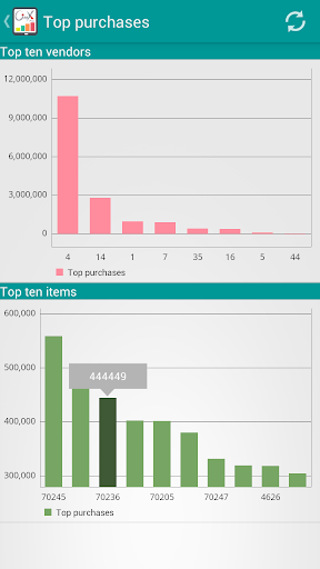 • Chart of the net purchases according to the selection from the categories list (branches, warehouses, centers, activity, project)