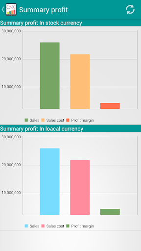• Chart that illustrates the total profit in stock currency according to the category (branch, warehouse, center, delegate, project, activity)