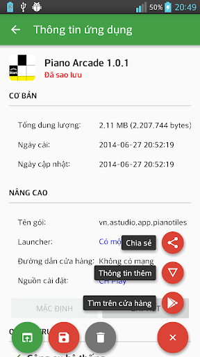 3. Hiển thị tất cả thông tin ứng dụng đã được cài đặt như: Icon, tên, phiên bản, ngày tháng cài đặt, dung lượng của app, tên gói, đường dẫn cửa hàng CH Play...