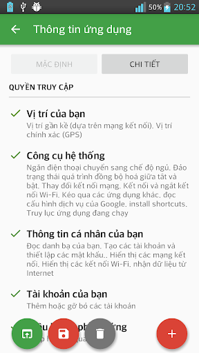 Your Uninstaller Pro còn hiển thị các thông tin nâng cao trong màn hình chi tiết để biết ứng dụng bạn đã tải có thực sự gây nguy hiểm cho thiết bị của bạn hay không như: