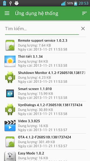 5. Hỗ trợ tốt việc sắp xếp danh sách theo: ngày, cỡ, tên ứng dụng.