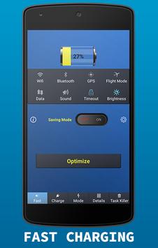 Fast battery charger 2017 lets you charge your mobile device with ease and comfort. It examines all those services that drain out the battery like auto sync, bluetooth, GPS, Wi-Fi, NFC, mobile data, high screen brightness, Screen timeout etc. and turns them off when needed. And