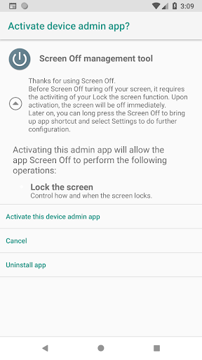 3. Để giúp bạn đóng màn hình, chương trình này sử dụng quyền quản trị viên thiết bị và không yêu cầu bất kỳ quyền không cần thiết nào.