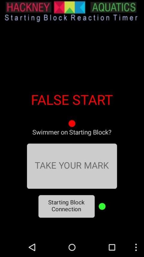 Coach stands poolside and calls "On Your Mark" and "Go/Start" as he/she taps each of those buttons on his/her Android device. The time duration (the swimmer's reaction time) between the "Start" call and the swimmer leaving the block displays on the coach's device immediately. A False Start is indicated if the swimmer has left the block before the coach has given the "Go/Start" order.