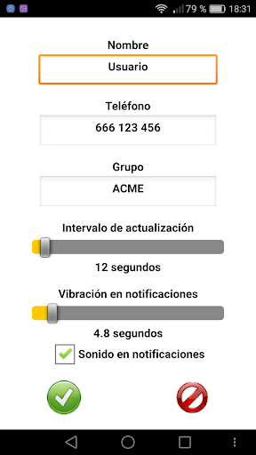 Từ màn hình cấu hình, bạn có thể tùy chỉnh các khoảng thời gian cập nhật của vị trí của mình trên bản đồ, nếu bạn muốn nhận thông báo với rung hoặc với giọng nói. Tất cả rất trực quan và được nhóm trên cùng một màn hình.