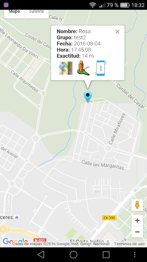 Từ bản đồ của bạn đang ở đâu? Bạn có thể chọn các thành viên khác của nhóm và bằng cách nhấp vào điểm đánh dấu màu xanh, bạn sẽ có thể xem tên, điện thoại, ngày và giờ của bản cập nhật cuối cùng của vị trí của chúng và độ chính xác của tọa độ của họ. Một số biểu tượng cũng sẽ xuất hiện cho phép bạn gọi qua điện thoại (nếu bạn có số điện thoại di động được định cấu hình), hãy chuyển đến vị trí của bạn bằng GPS, xem vị trí của bạn bằng Chế độ xem phố hoặc gửi tin nhắn bằng cách nhấp vào biểu tượng di động xuất hiện trên bên phải. Như mọi khi, tất cả đều rất trực quan.