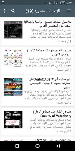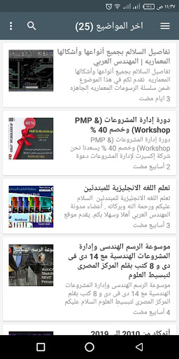 Mềm mại và dễ dàng để duyệt.> Chương trình chứa một tab của trang chính, bao gồm Tất cả các chủ đề và hội thảo trên trang web của Kỹ sư Ả Rập.