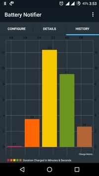 *Feature to show charge history*. This application notifies you when ever a desired battery level is reached while charging. You can set alarm notification as well.