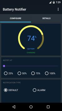 *Battery Notifier notifies you when ever a desired battery level is reached while charging.