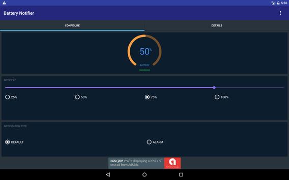 Get Notified with notification alert when a needed battery level is reached and explore battery condition.