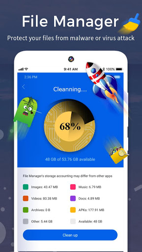Bạn luôn có thể biết lưu trữ điện thoại của mình, được sử dụng bao nhiêu và bao nhiêu không sử dụng. Ngoài ra, bạn có thể duyệt và chỉnh sửa tất cả các tệp thư mục ở trên cùng.