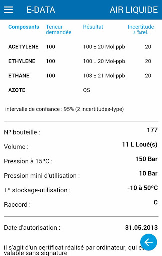 Get an instant on-screen display of the analysed values of your gas mixture so you can configure your monitor. QR code recognition also makes it possible to download the mixture’s analysis certificate and Material Safety Data sheet (MSDS) in PDF format. These documents can then either be saved or forwarded by email via your smartphone’s messaging software.