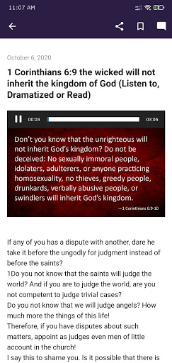 Trích dẫn và bài đọc kinh thánh ngẫu nhiên trong âm thanh và video;