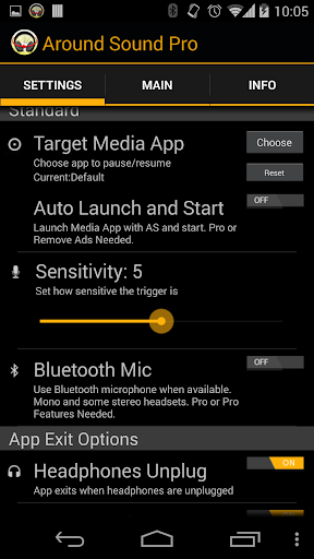 Ứng dụng này sử dụng micrô tai nghe của bạn để nghe tiếng ồn lớn. Sau đó, tùy thuộc vào chế độ nó hoặc tạm dừng hoặc giảm âm lượng nhạc hoặc phim của bạn sau đó phát lại âm thanh đã kích hoạt nó. Sau đó trả về nhạc hoặc phim của bạn đến âm lượng bình thường hoặc sơ yếu lý lịch phát lại.