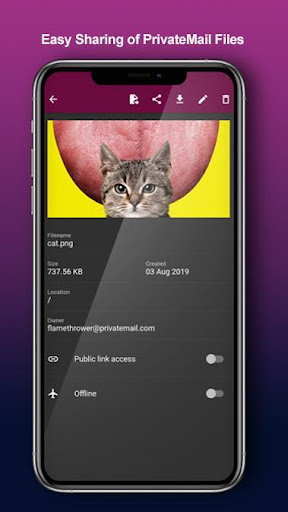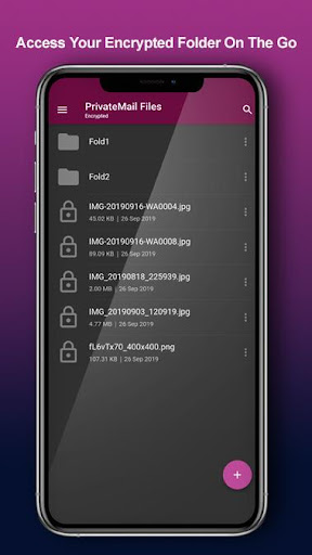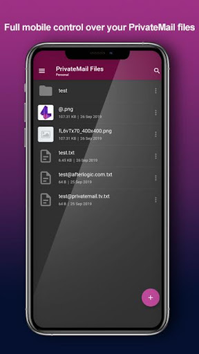 Tệp PrivateMail cho phép truy cập di động an toàn vào các tệp cá nhân và được mã hóa được lưu trữ trên các máy chủ PrivateMail.Ứng dụng này cho phép bạn thực hiện tất cả các thao tác tệp thiết yếu như xem, đổi tên, xóa, chia sẻ, chế độ ngoại tuyến và hỗ trợ mã hóa / giải mã AES-256.Các tệp riêng tư cũng hỗ trợ các gói kinh doanh chia sẻ tiêu chuẩn và nhóm.Dễ dàng tạo các thư mục mới hoặc tải lên các tệp trực tiếp từ thiết bị di động của bạn.Bạn cũng có thể giải mã bất kỳ tệp nào được lưu trữ trên thư mục được mã hóa riêng của bạn bằng cài đặt mã hóa tích hợp.