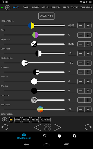 • Các tông màu, Máy trộn, chi tiết, hiệu ứng, phân tách Toning, biến đổi và hiệu chỉnh được cung cấp.