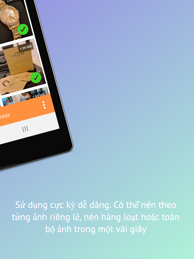 Ảnh được nén có thể dễ dàng chia sẻ hoặc tải lên tài khoản mạng xã hội của bạn, tin nhắn trò chuyện có giới hạn kích cỡ ảnh, và cả email.