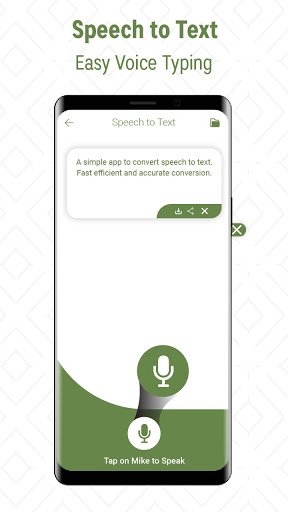 Làm cho cuộc sống dễ dàng hơn để ghi lại các đoạn văn bản ngắn hoặc dài với ứng dụng Trình dịch giọng nói này. Không giống như các ứng dụng nhận dạng giọng nói khác, ứng dụng văn bản bài phát biểu này không ngừng nghe khi bạn nghỉ ngơi để thở hoặc suy nghĩ. Nói và dịch tất cả các ngôn ngữ bằng cách gõ bằng giọng nói với bài phát biểu với dịch thuật văn bản. Nghĩ ra để làm cho viết nhanh chóng và dễ dàng. Speech To Text Converter là một bài phát biểu miễn phí để văn bản với nhiều tính năng