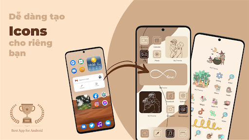Sử dụng MyTheme, bạn có thể thay đổi biểu tượng ứng dụng trên màn hình của mình bằng nhiều hình ảnh khác nhau để phản ánh cá tính và sở thích của bạn. MyTheme cung cấp nhiều biểu tượng, chủ đề và ảnh chụp màn hình được thiết kế đẹp mắt. Với tính năng tùy chỉnh biểu tượng, bạn cũng có thể chọn những hình ảnh mình thích nhất từ album và đặt chúng làm biểu tượng ứng dụng của mình. Tải xuống MyTheme ngay bây giờ để làm cho màn hình của bạn mới và đẹp!