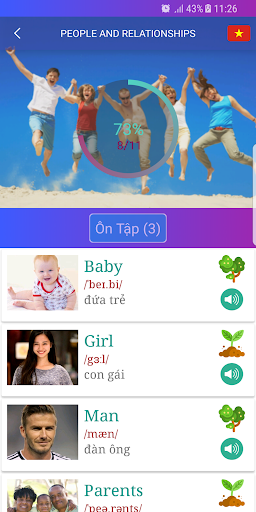 Hình ảnh App cụ thể có điểm nhấn, nghĩa của từ chính xác. Bạn có thể học theo flash card trực quan, sinh động. Học từ vựng được hiển thị trên màn hình ngay cả khi bạn tắt ứng dụng.