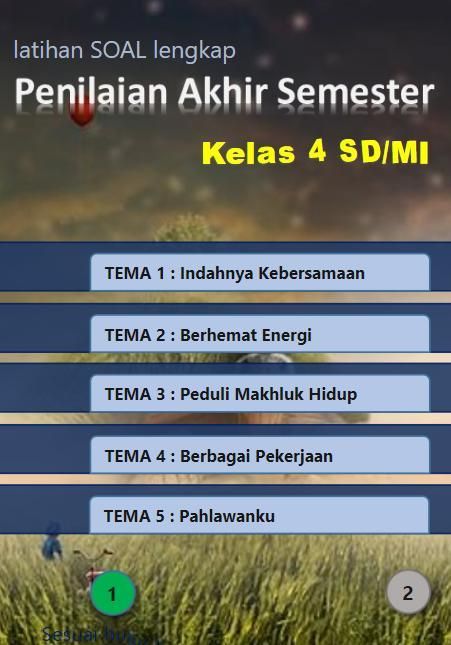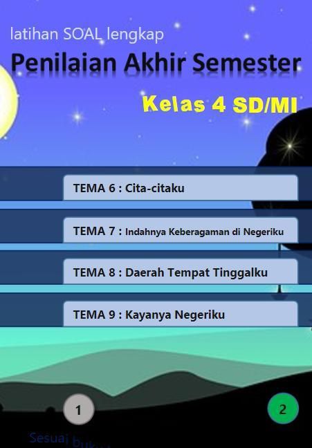 Latihan SOAL Penilaian Akhir Semester dan Ulangan Harian Untuk Sekolah Dasar Kelas 4 (empat) SD/MI edisi revisi terbaru (2019/20120) yang didesain khusus untuk Handphone/Tablet Android. Aplikasi ini dibuat berdasarkan BSE (Buku Sekolah Elektronik) dari Kementerian Pendidikan dan Kebudayaan untuk kepentingan pendidikan dan memudahkan siswa belajar dimana saja dan kapan saja melalui perangkat android.
